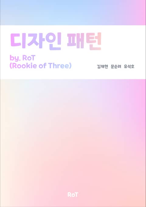 디자인 패턴 by. RoT(Rookie of Three) 작품소개: 소프트웨어를 잘 설계하기 위한 핵심적 디자인 패턴에 대해 알고싶지 않으신가요?도움이 필요하지만 너무나도 많은 패턴의 갯수와 광범위한 공부량에 시작하지 못하시는 예비 독자들께 본 도서 “디자인 패턴 by.RoT(Rookie of Three)”를 추천해 드립니다.큰 줄기인 3가지 패턴 생성 / 구조 / 행동 패턴을 다루며, 각각의 패턴에서도 가장 잘 알려져 있...